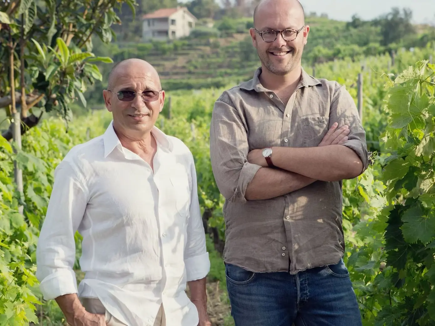De familie Rondelli plantte reeds in 1870 de eerste Rossese druivenstok op de unieke witte bodem waar wijndomein Terre Bianche naar vernoemd is. Sinds de jaren ‘90 nam Filippo Rondelli (rechts op de foto) het roer over van zijn vader om de kwaliteit van de toen al award-winning wijnen nog verder te doen stijgen. Vlakbij het stadje Dolceacqua, maken ze er nog steeds de lokale Rossese di Dolceacqua (de allereerste wijn die de DOC status verkreeg in Ligurië) alsook frisse, minerale witte wijnen gemaakt van Vermentino en de lokale Pigato druif.