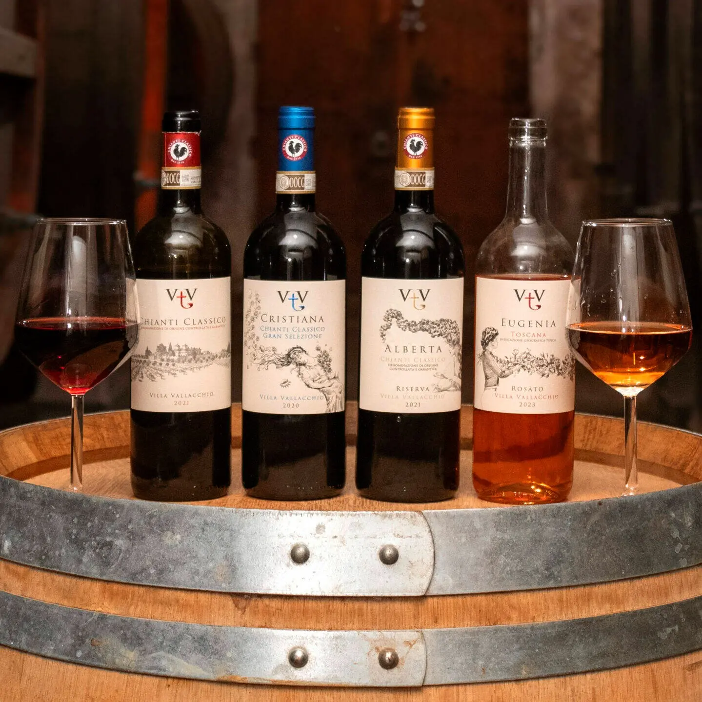 Alberta Caini en dochter Cristiana Benucci zijn respectievelijk de tweede en derde generatie vrouwen aan het roer bij Villa Vallacchio. Het kleinschalig familiebedrijf, opgericht door grootmoeder Eugenia, is gelegen in San Casciano in Val di Pesa, in het noorden van de Chianti Classico wijnregio. Villa Vallacchio omvat 23 hectare wijngaarden aangeplant met Sangiovese, aangevuld met Canaiolo, Cabernet Sauvignon, Syrah en Merlot. Rondom de wijngaarden staat het vol met olijfbomen, met centraal een charmant kapelletje uit de 16de eeuw.